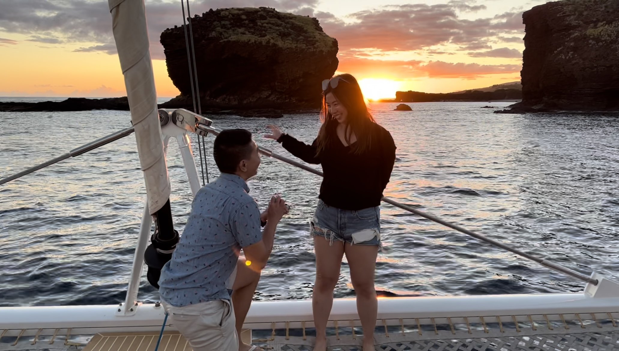 While holidaying in Hawaii, John had planned to propose after a hike at Pu‘upehe, an iconic landmark in Lanai. Unfortunately, tragedy struck when Nancy accidentally stubbed her toe and became unable to walk. However, there was a backup plan. During a sailing cruise, John proposed against the backdrop of the Hawaiian sunset.